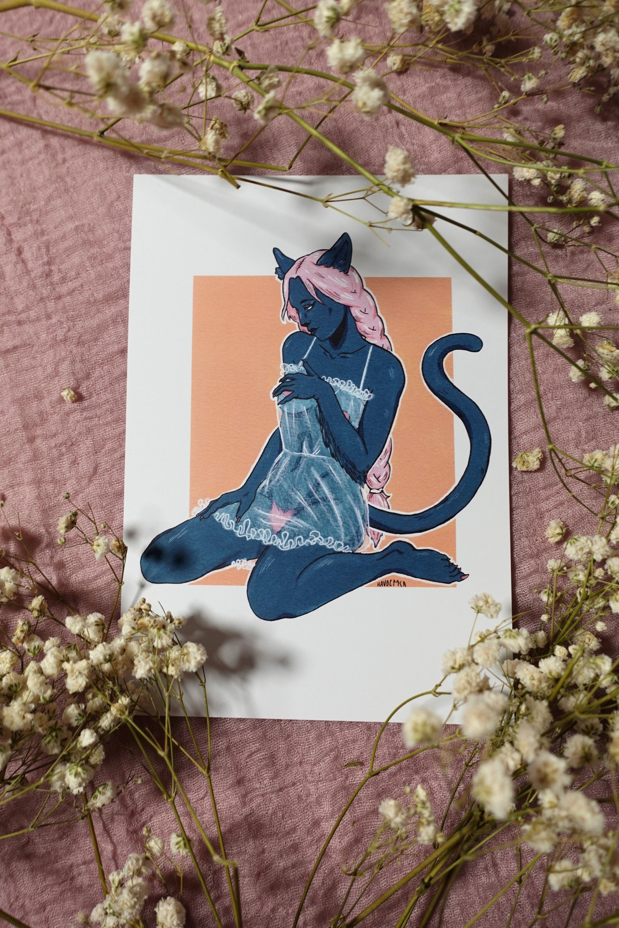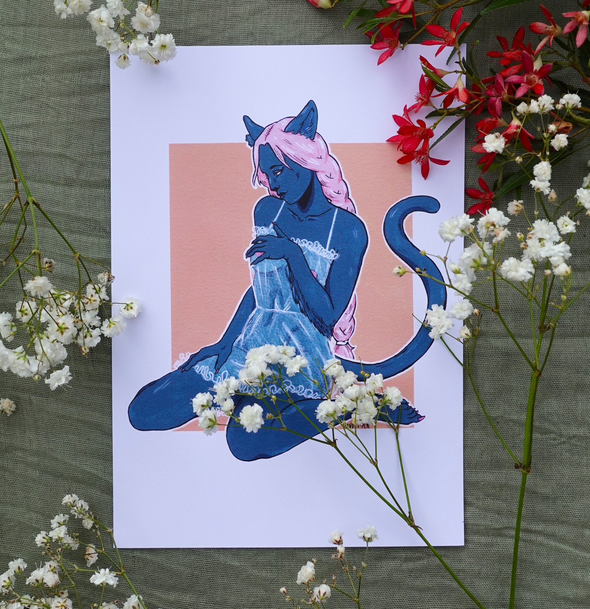 Standard prints come on matte 200gsm paper. They’re faithful reproductions of the original paintings, and are great for sticking straight to the wall or placing in a frame.