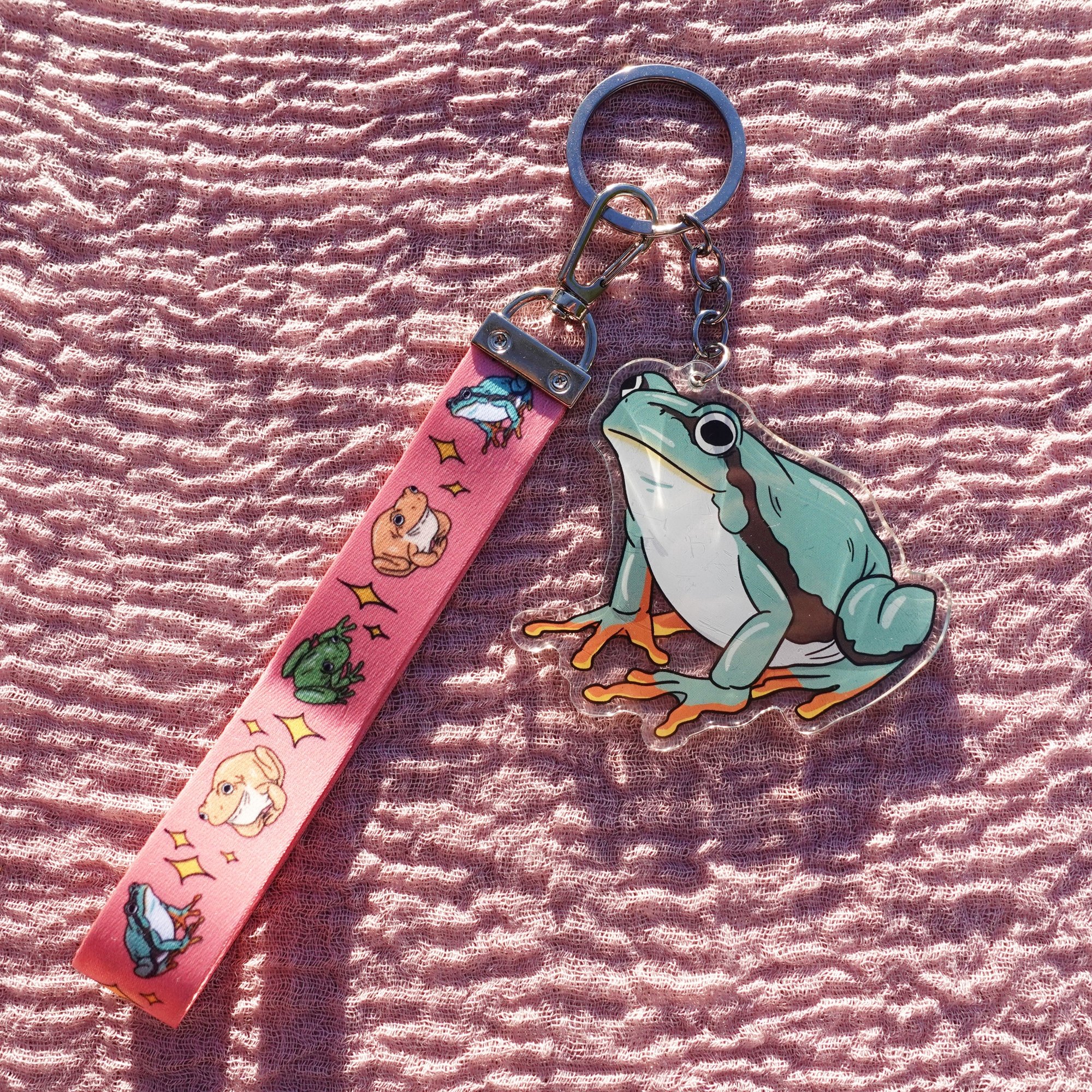 Keychain: This acrylic keychain is double sided, and measures aprox. 6x5cm and hangs about 8cm from clip to bottom.