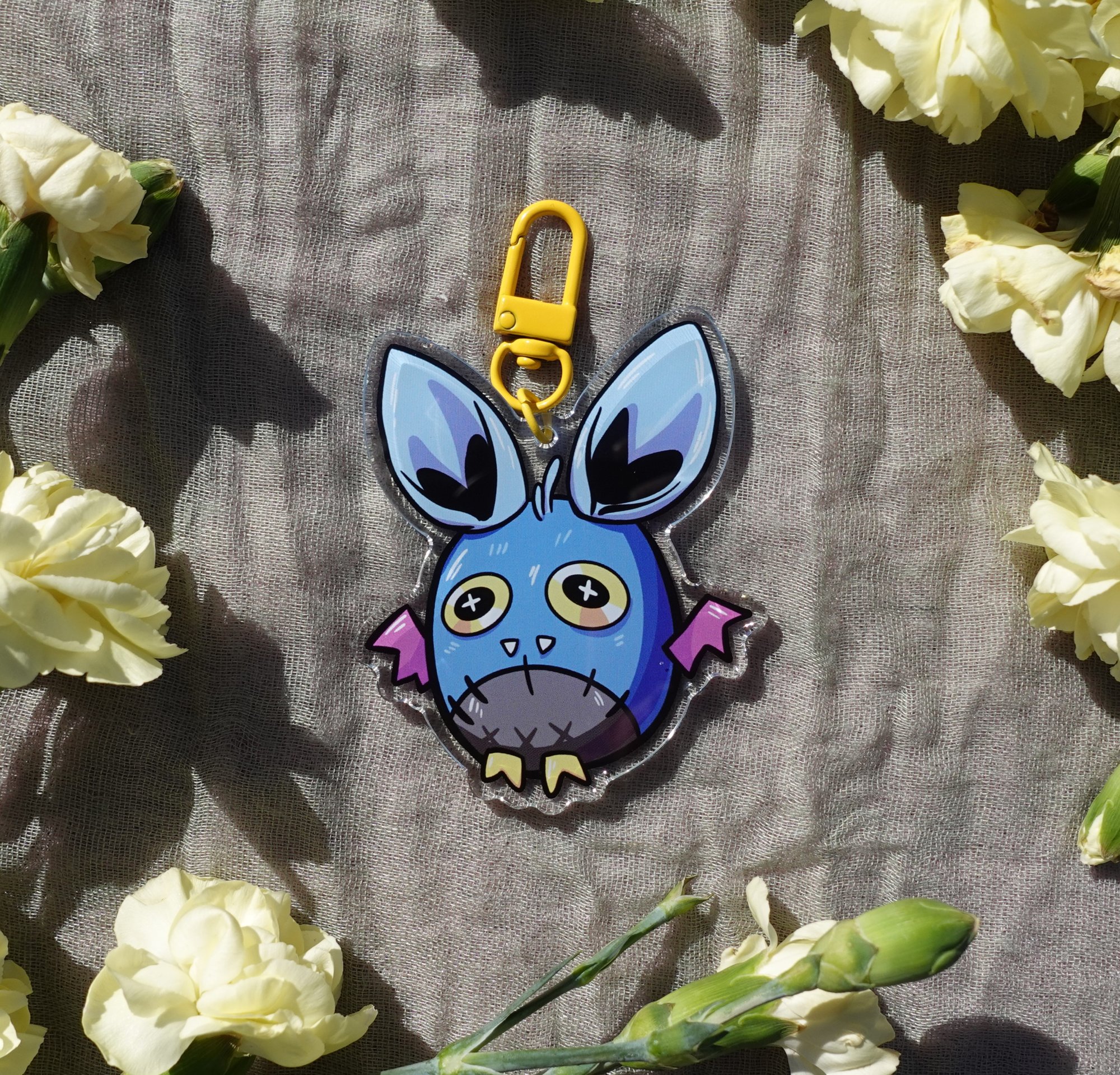 Keychain: This acrylic keychain is double sided, and measures aprox. 6x5cm and hangs about 9cm from clip to bottom.