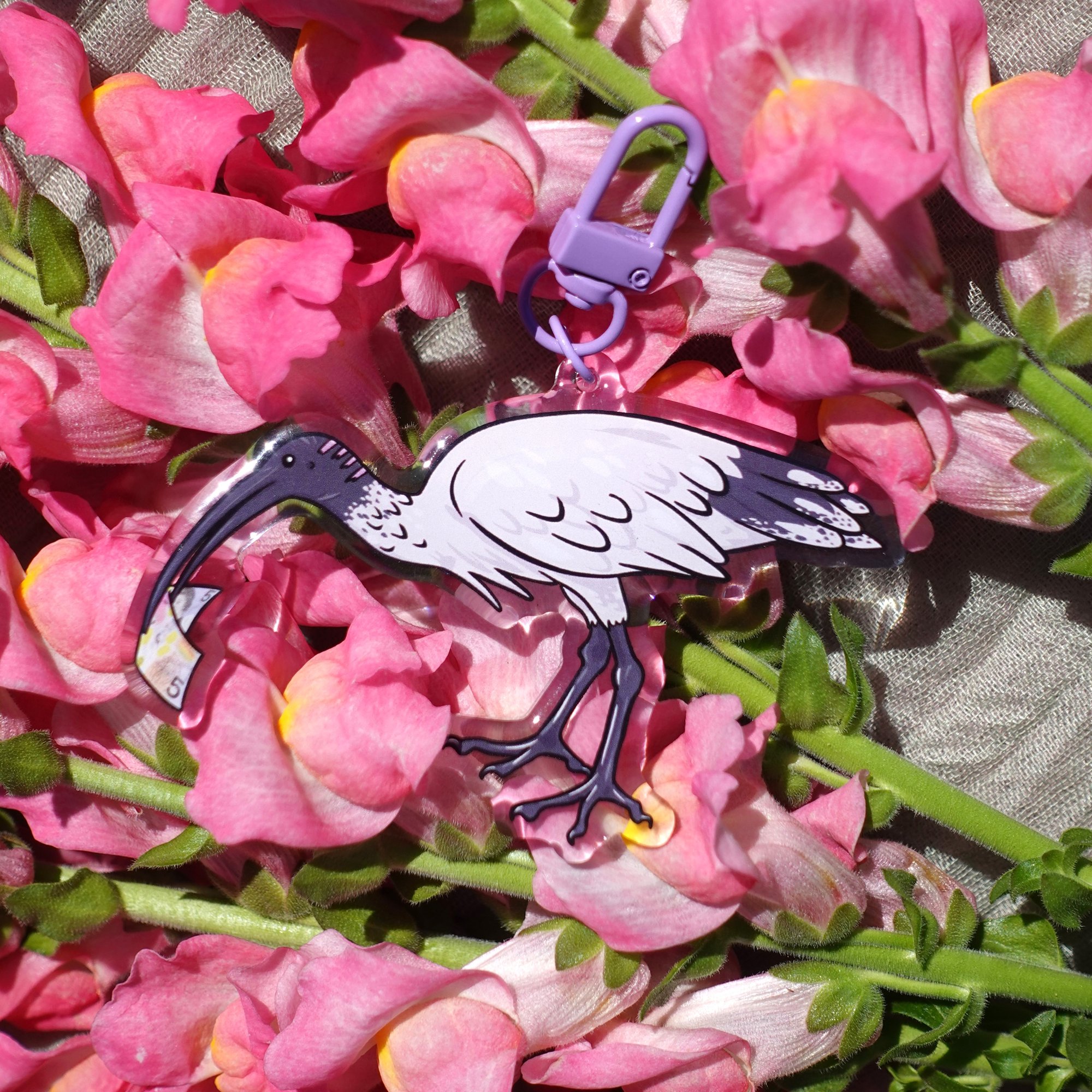 This acrylic keychain is double sided, and measures aprox. 6x9cm and hangs about 8cm from clip to bottom.