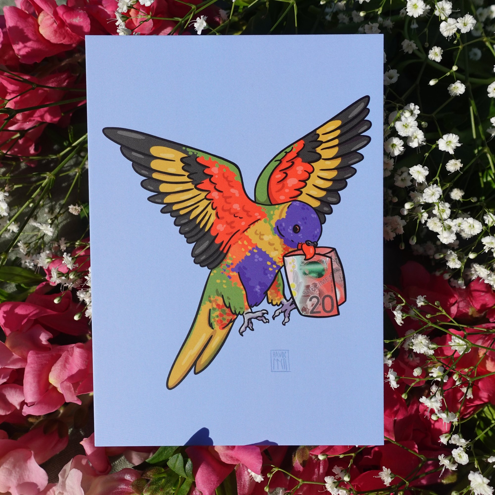 Standard prints come on matte 200gsm paper. They’re faithful reproductions of the original paintings, and are great for sticking straight to the wall or placing in a frame.