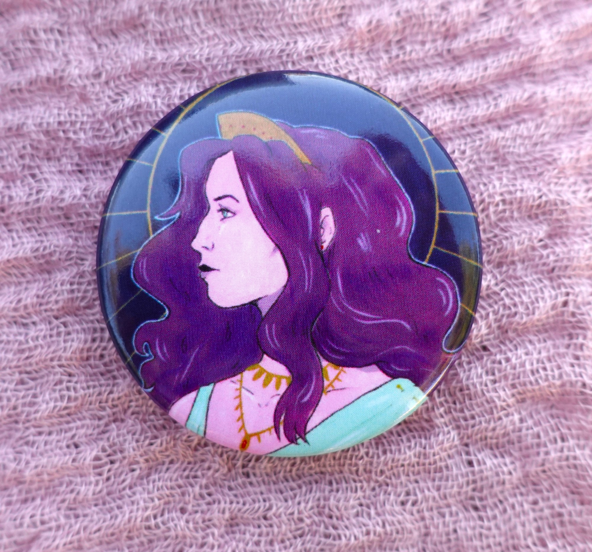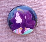 This badge is approximately 3.5cm wide, with a sturdy plastic back and a shiny clear coating.