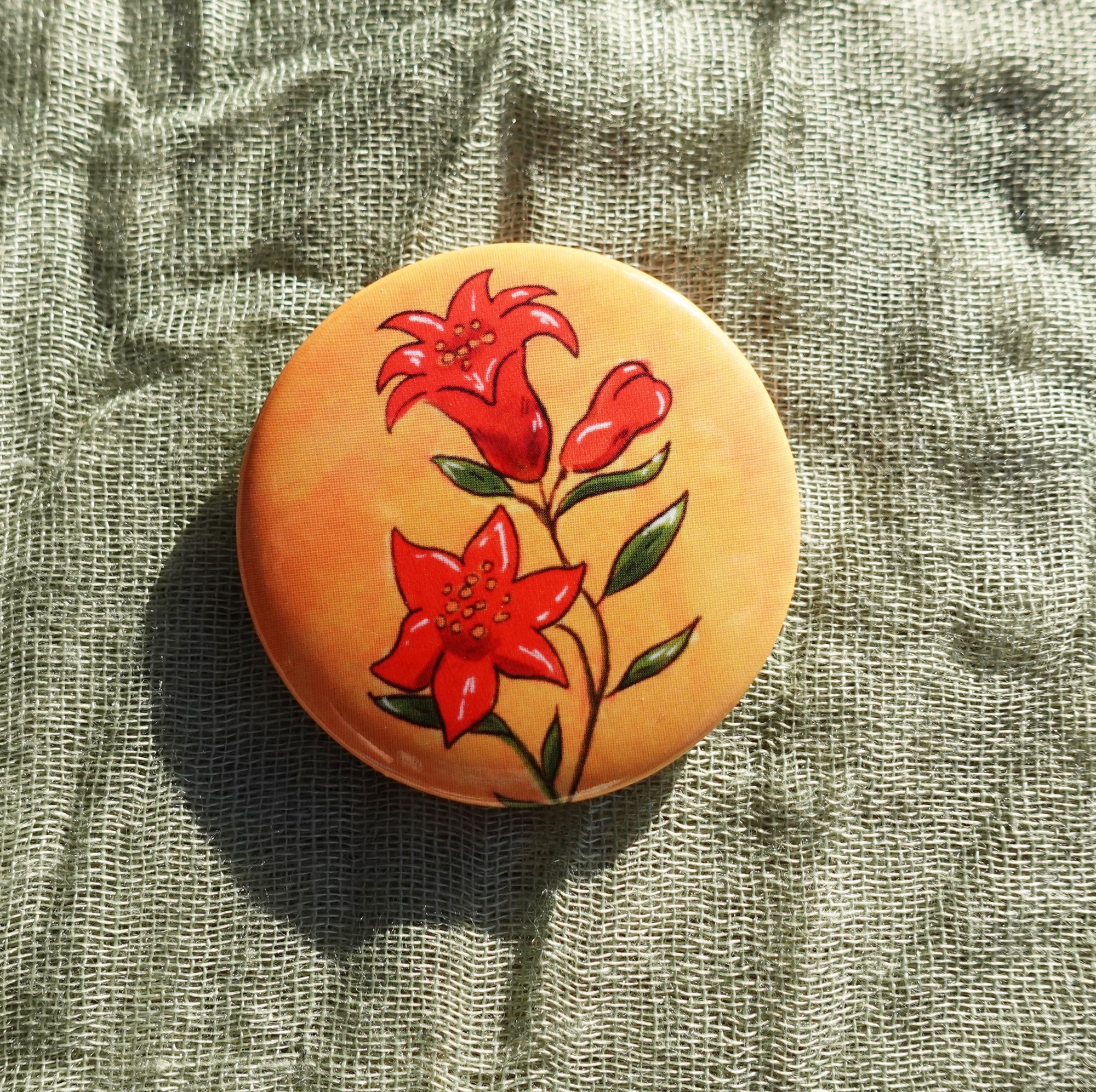 This badge is approximately 3.5cm wide, with a sturdy plastic back and a shiny clear coating.
