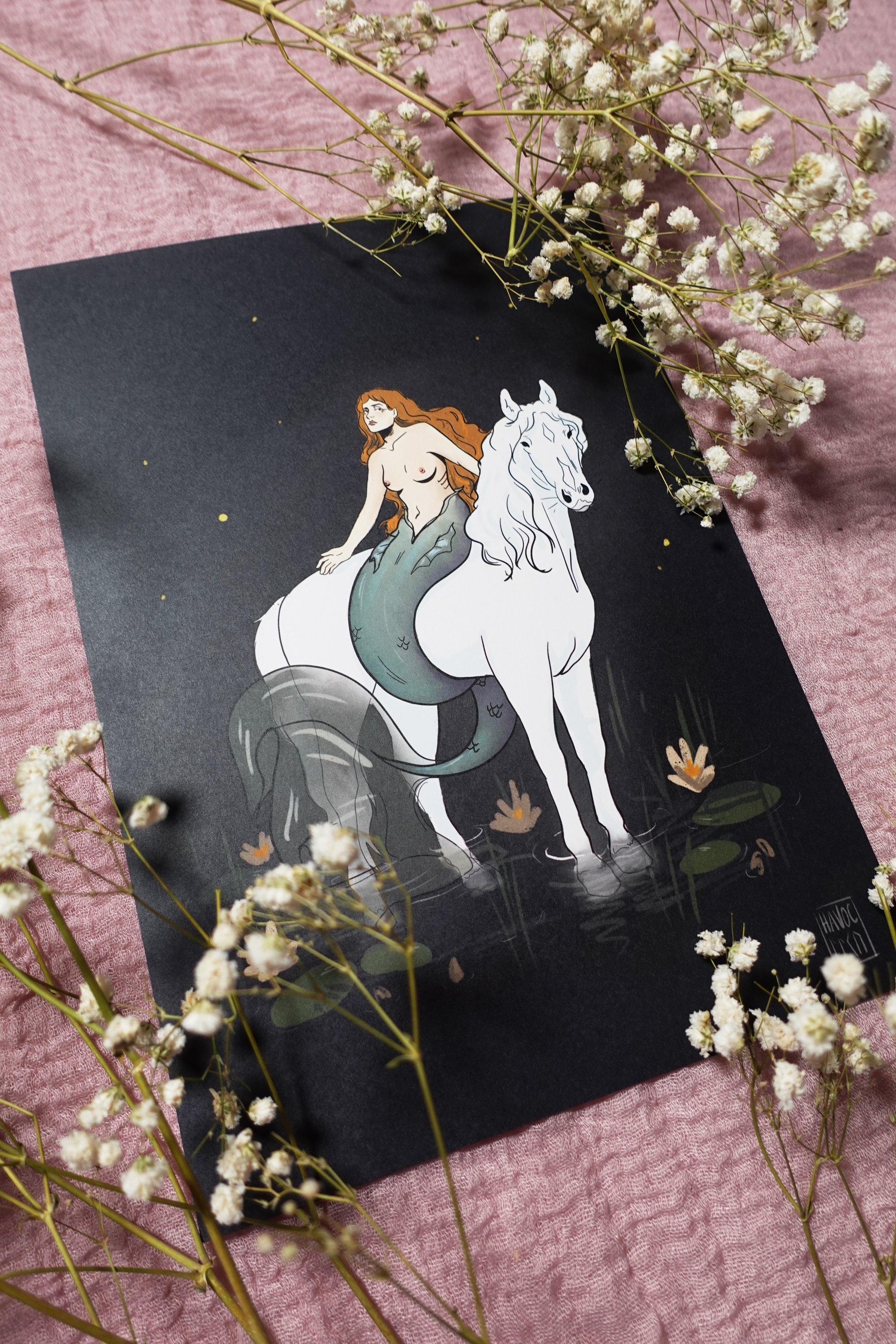 Standard prints come on matte 200gsm paper. They’re faithful reproductions of the original paintings, and are great for sticking straight to the wall or placing in a frame.