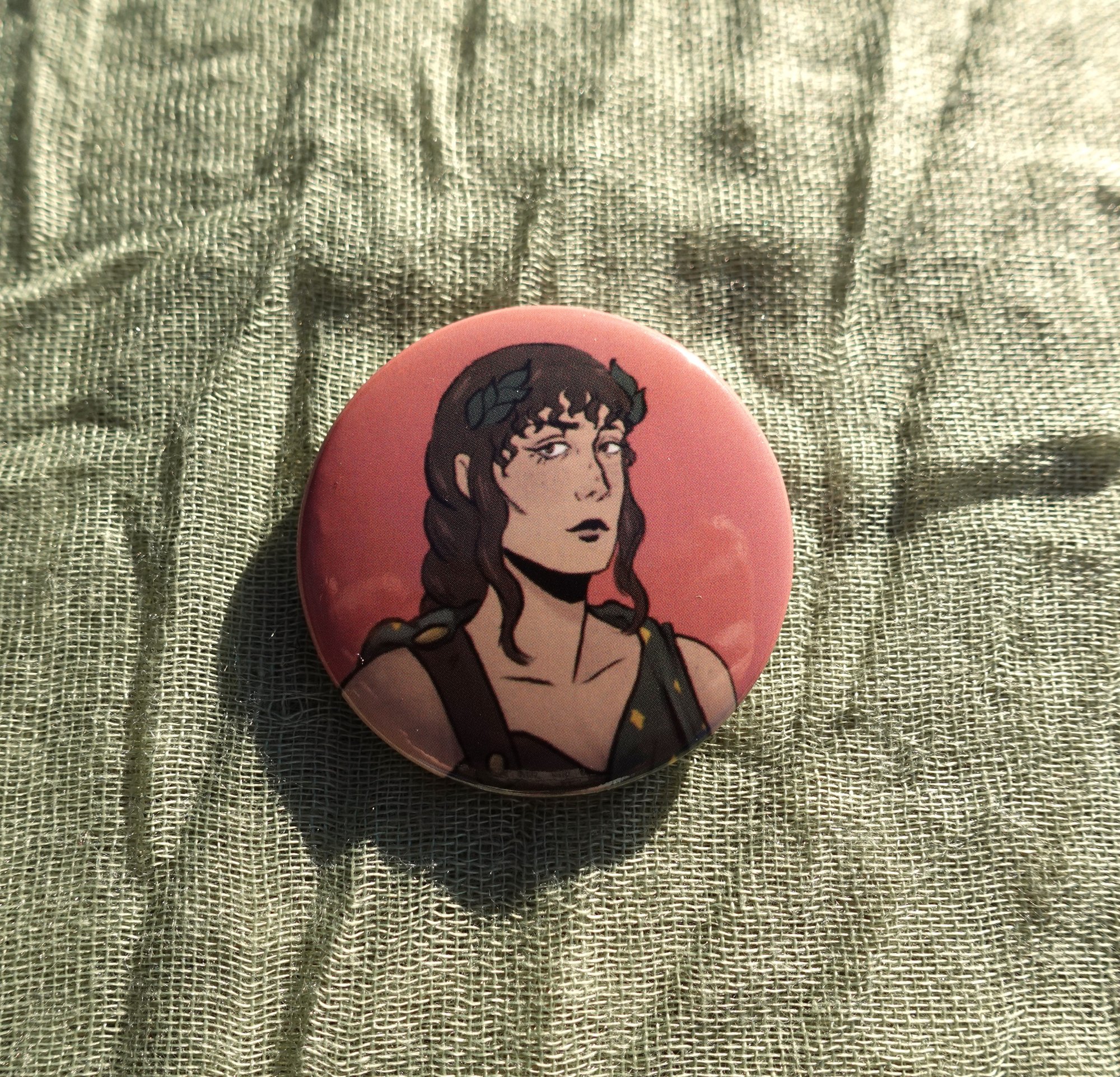 This badge is approximately 3.5cm wide, with a sturdy plastic back and a shiny clear coating.